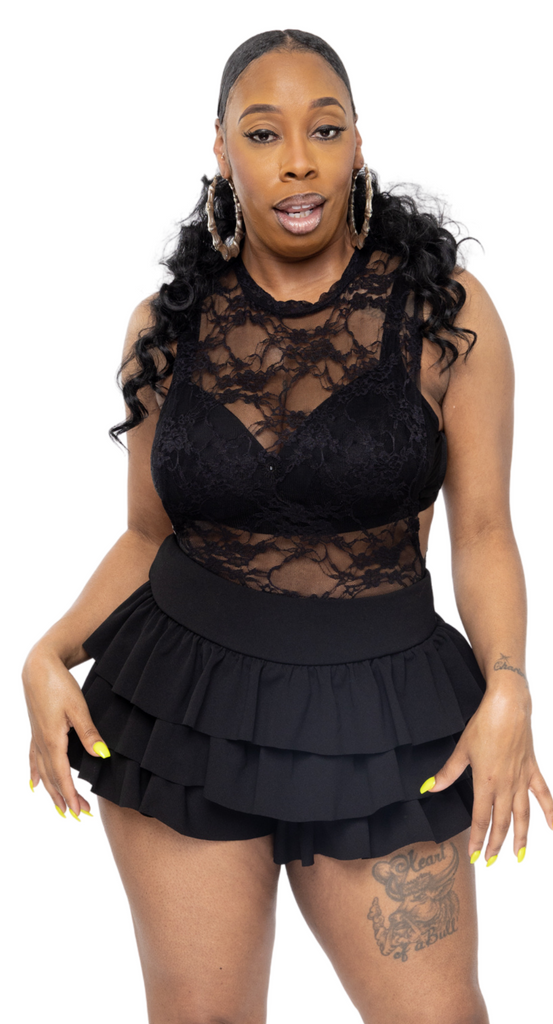 Stun in this lace crop top with side boob, perfect for a night out or a daring look. With its playful lace and unique cut, you'll be the talk of the town. Get ready to turn heads and embrace your inner fashionista!
